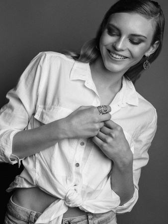 Kolczyki powstały w całości ze srebra o próbie 925, które następnie zostało pokryte czarnym rodem, dzięki czemy zyskały unikalną barwę. rodem. Ręcznie naniesiony mat powoduje załamanie się światła na ażurowej powierzchni. Dzięki temu kalczyki jeszcze bardziej przykuwają uwagę.